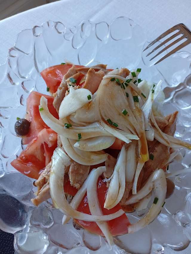 - Ravioli de verdures amb vinagreta de tomàquet, taperes i espàrrec verd