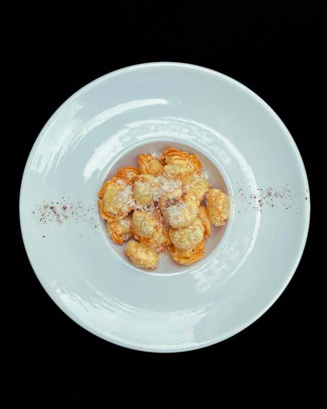 Tortellini fritti conditi con salsa al parmigiano reggiano dop 30 mesi
