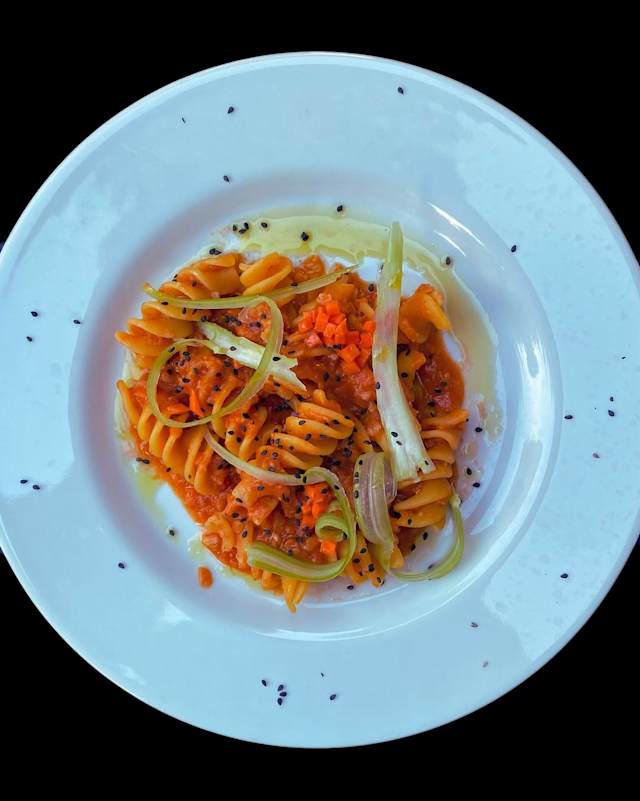 Fusilloni giganti conditi con ragù di verdure fatto in casa