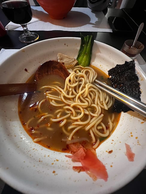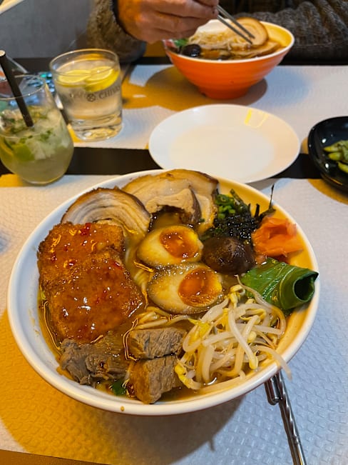 7/10The server was very polite and the food came out quickly. I had a ramen bowl 🍜 that had very flavorful broth but the other ingredients was sparse and did not taste fresh. The mushrooms tasted like rehydrated mushrooms, and the boiled egg was flavorless and cold.