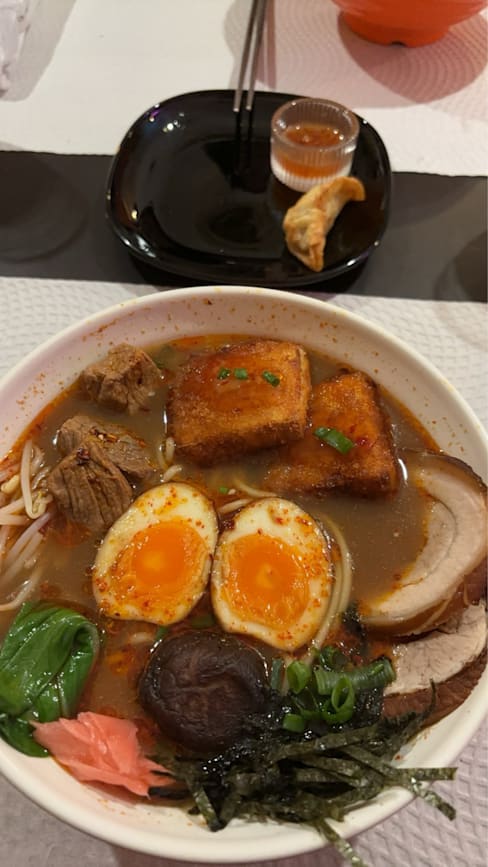 2.5/10The ramen was disappointing. The egg was cold, the mushrooms were mushy, and the noodles tasted like they came from an instant package. The broth was way too salty, probably from instant powder. The place was completely empty I won’t go back.
