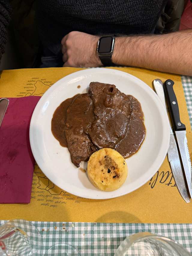 6/10They did not have many of the items they offered on the menu. The waiter kept trying to push the mushroom pasta because they were in season. Portions were small, even for Italy. The steak was very tender, but not particularly tasty. Could probably try another place before I would go back.
