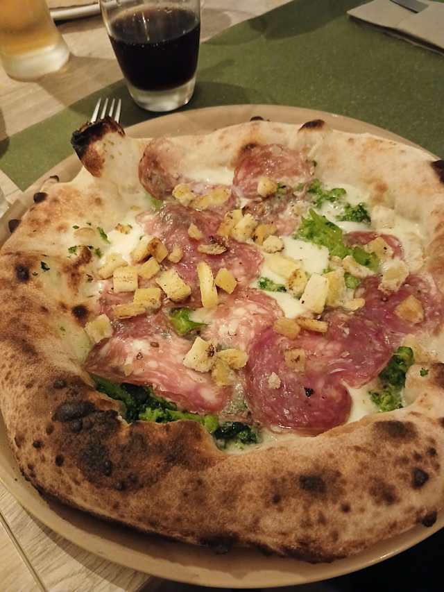 - Pizza trifora fiordilatte, pomodoro, provolone, pinoli tostati capocollo di Martina Franca