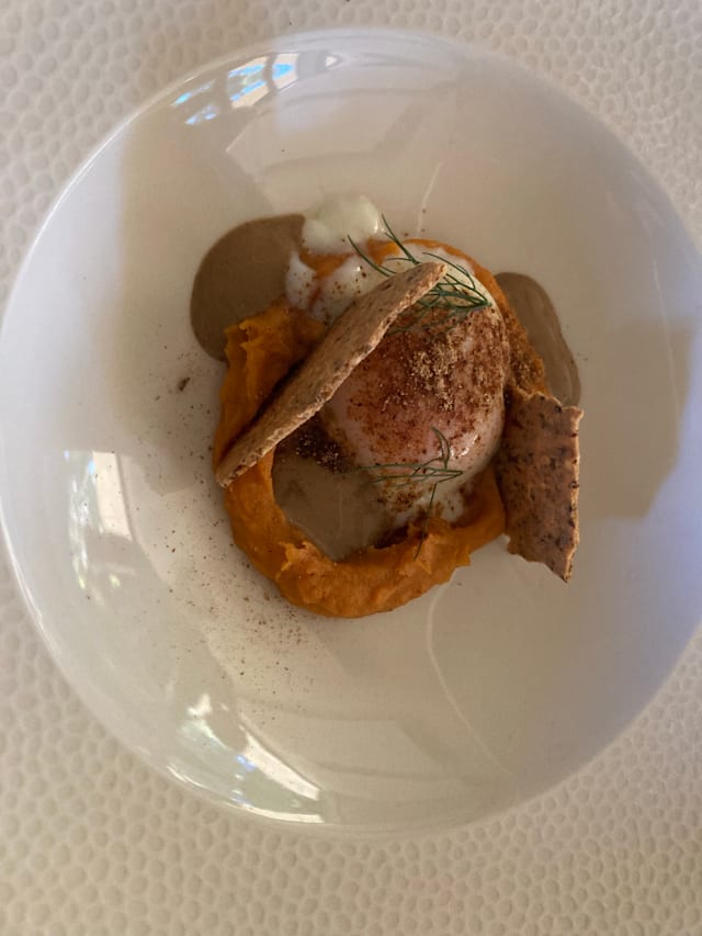 10/10A beautiful modern restaurant in the countryside. Architecturally stunning. An imaginative menu (English version provided without having to ask for it!). Lovely polite and friendly service provided by charming English speaking servers. Fantastic dishes beautifully presented. Nice bonus to get 20% off via The Fork. Highly recommended.