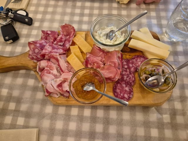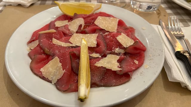 - Carpaccio di carne salada con scaglie di trentingrana e olio al tartufo
