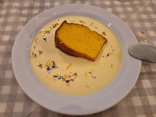- Formaggio fiavè fuso su polenta di storo con cappuccio fresco condito