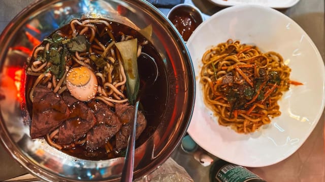 O nosso peito de vaca e caldo exclusivo cozido lentamente com 8 ervas chinesas por >6 horas, com repolho em conserva, coentros frescos e pakchoi. A opção vegana é servida em caldo feito com 6 vegetais diferentes e coberta com tofu firme.