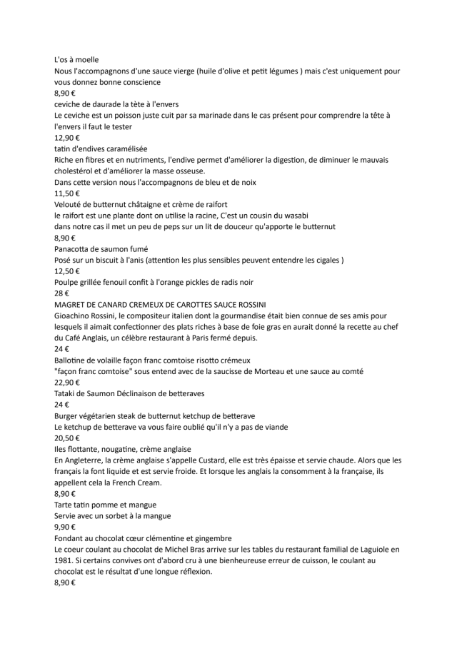 10/10Wonderful food and service and a charming ambiance. Located on the main road N34 this restaurant has a lot of character and a great menu, as well as reasonable prices. 10 minutes from La Vallee Village shopping center and Disneyland, it’s a great choice if you have a car. We will definitely return!