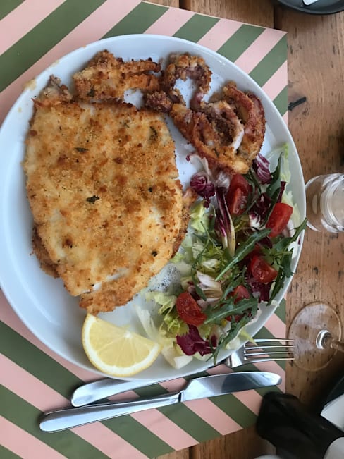 8/10Quiet location in a pretty part close to the castle. Delicious bruschetta, slightly disappointing chicken sticks, lovely pasta with mushroom & tasty squid.