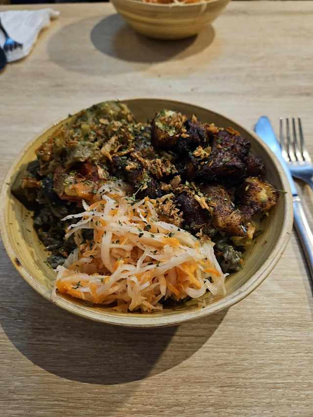 7/10Nice restaurant but not very cozy. With the discount it was reasonable and in general it is quite expensive. The food was fresh and had a unique taste. Very customer friendly and the portions are ok. Not a lot of vegan options.