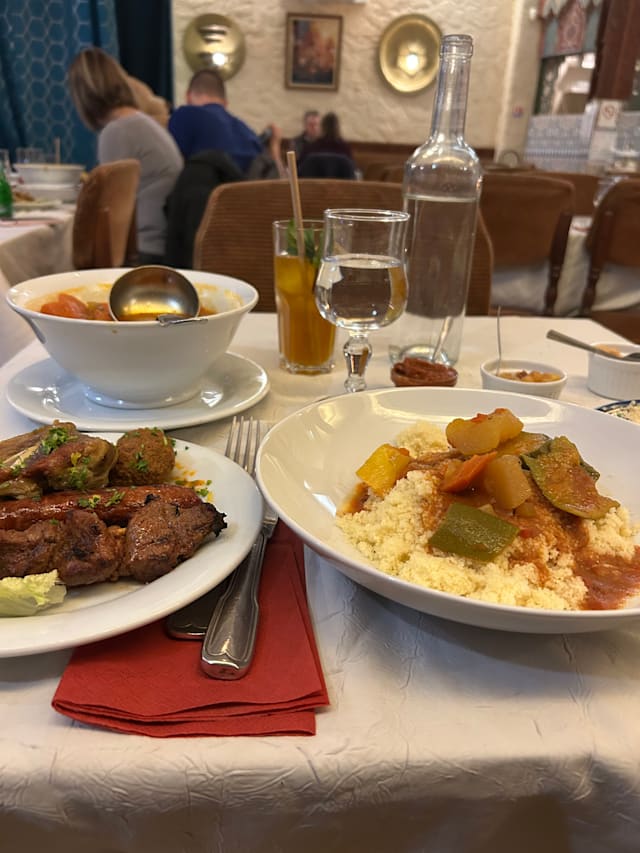 7.5/10The food is really tasty, but my sister wasn’t too hungry so we wanted to take 1 couscous and 1 appetizer (the mix of their specialities). But the waiter said this is not possible, we should have a plate per person. My sister said “but I’m not even so hungry I just wanna taste a bite or two with my sister” ???? he was like “these are the rules”. So we stayed so calm and just took another plate. And at the end they throw half of our food because we couldn’t eat everything (which is normal). So just listen to your customers when they say they really don’t want to order a big quantity, we’re not cheap ???? we just don’t want to throw food.
