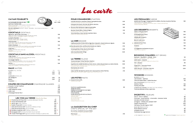 7/10Taste of food was good as well Fouquet's Champagne, Mojito and wine of our selection. The most important was the great panoramic view during the sunset on the lake. More fantasy on the plate will be appreciated considering the price. We had a nice service in bar (lake level) and in restaurant.