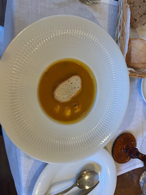 6/10the starters were good, fish soup and baked cheese (fondu). the mains I had sea bream with tomato rice, it was ok, nothing special that I cannot make myself.