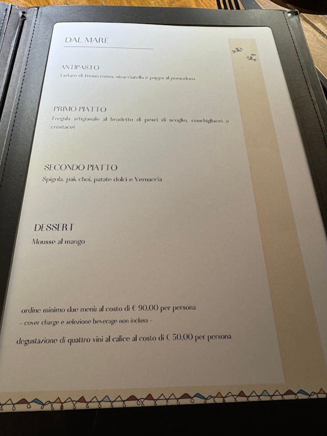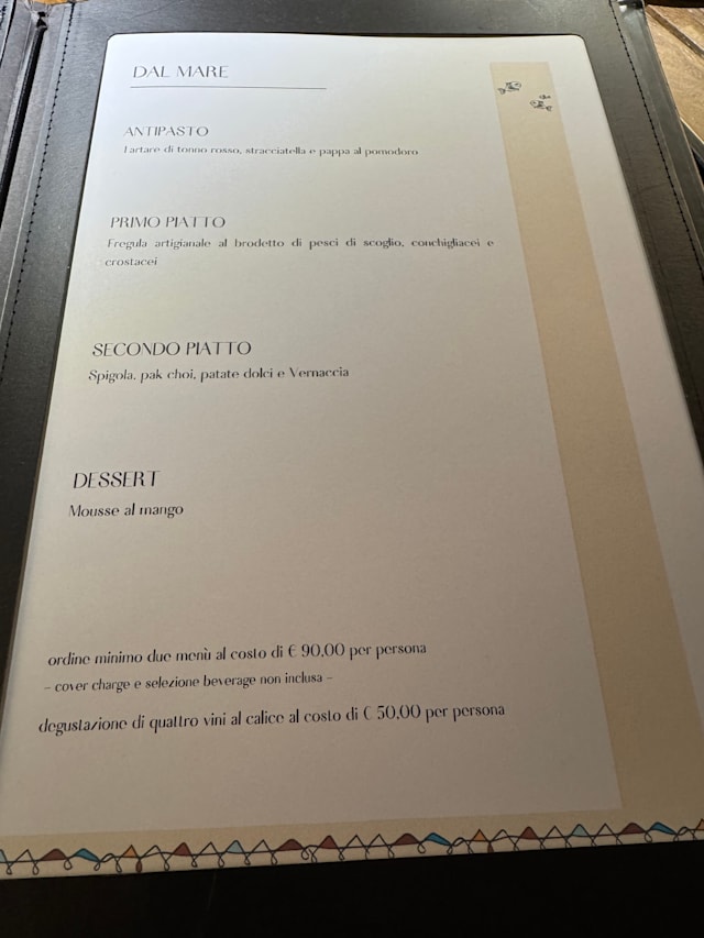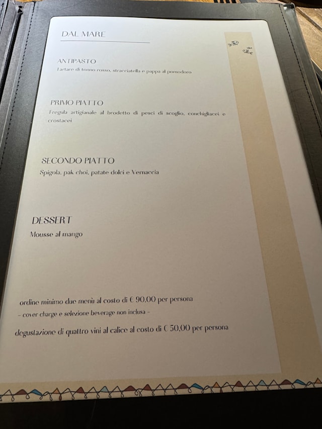 10/10While our meal was unexpected and outstanding, Mile, the maitre d, made our evening memorable. He helped us to navigate the menu, made lovely recommendations and regaled us with humorous stories. Not being familiar with Sardinia cuisine, we didn’t know what to expect but our entrees were delicious. The Sardinia wine list is extensive and mot readily available outside Sardinia so that was a treat Highly recommend a visit.