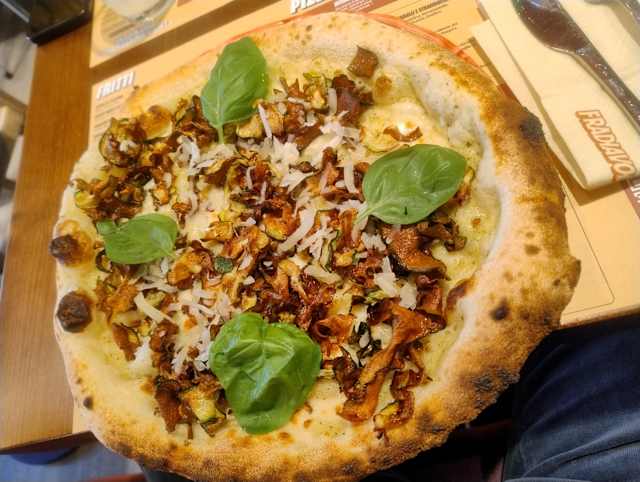 - Pomodoro la concettina, fiordilatte dei monti lattari, prosciutto cotto raspini, carciofi, funghi, olive, basilico, olio EVO