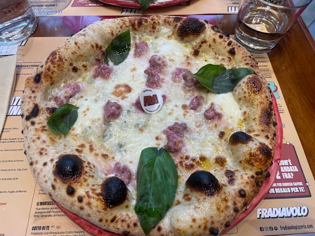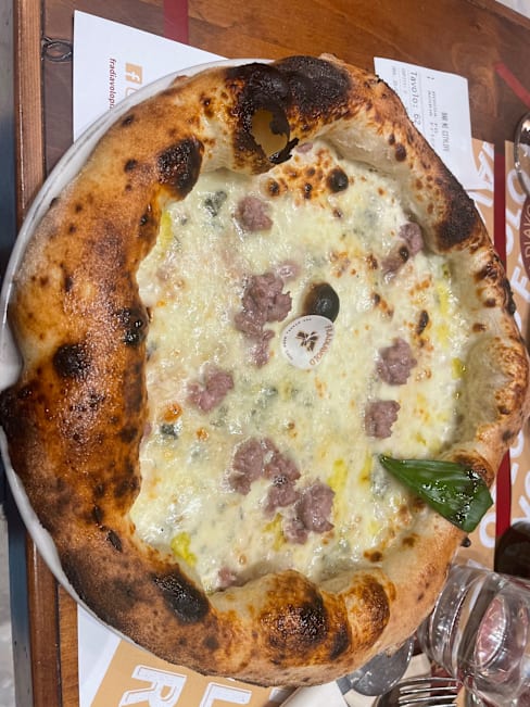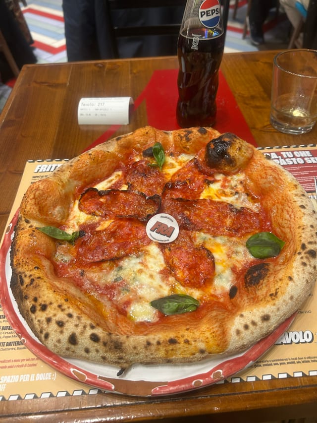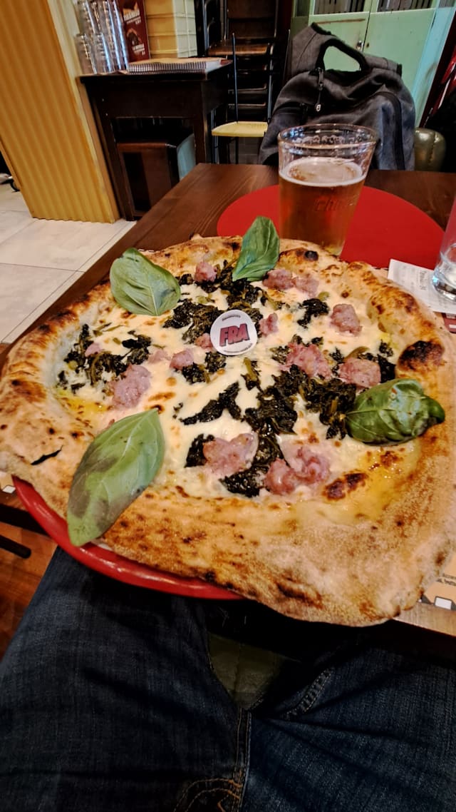 6.5/10pizza was ok but far from being well cooked: soggy and soft on the bottom with a geat deal of bread all around it. Probably some like it that way but I do not