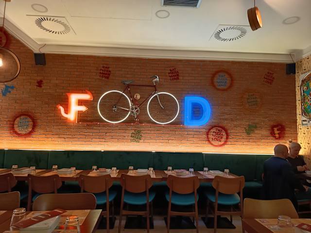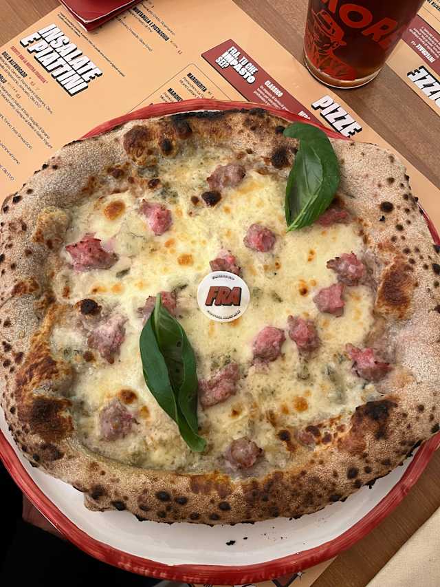 8/10It was nice to be in a brightly lit, high energy place. My Italian is limited but I was made to feel very welcome by the young people on staff. Service was prompt and friendly. I started with a fried potato croquette stuffed with mortadella and pistachio cream. Delicious in all ways. My secondi was a pizza affumicata. If too delicious but dry. Biggest and most pleasant surprise was their bespoke beer, Flippa. It was sweet and rose coloured with a creamy had and clean finish. What a beauty! All in I liked the place and I would go back with little convincing.