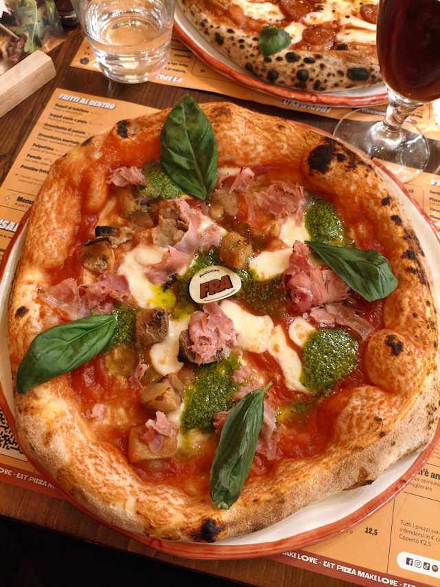 - Pomodoro la concettina, fiordilatte dei monti lattari, prosciutto cotto raspini, carciofi, funghi, olive, basilico