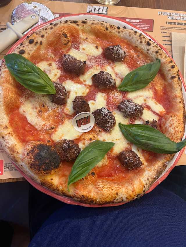 - Pomodoro la concettina, fiordilatte dei monti lattari, parmigiano reggiano DOP, polpette di carne di bovino presidio slow food e suino, basilico, olio EVO