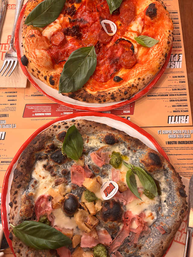 - Pomodoro la concettina, fiordilatte dei monti lattari, spianata piccante raspini ricetta “fradiavolo”, salamino piccante la granda, ‘nduja di spilinga, basilico, olio EVO