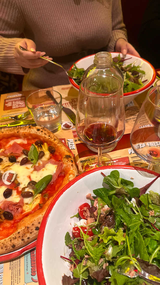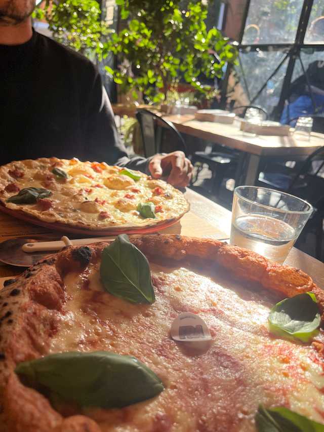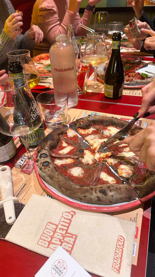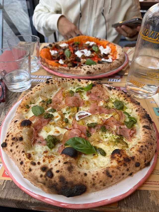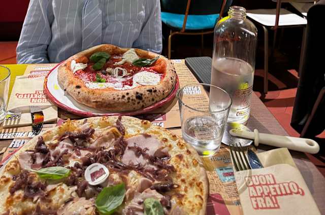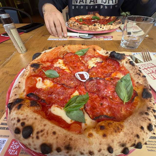 4.5/10Good location. But we should have walked on as this was a classic tourist trap. We were in the mood for pizza so we ordered Margherita and Buffalo Mozzarella along with Supli and an avocado salad. After waiting for a while all the food comes out at once. The Margherita pizza was dry and inedible. I complained to the mustached waiter and he said that is was how they do their pizzas and they can’t do anything about it. If the customer doesn’t like their food it’s their fault. (!?!) The Buffalo Mozzerella pizza and Avocado salad was decent. But the Margherita pizza and the service from the waiter with the mustache was horrendous. He avoided checking in on us the rest of the meal. Hard pass. Instead Check out Meridonale (great food and variety) or Canonica (great service and people watching.)