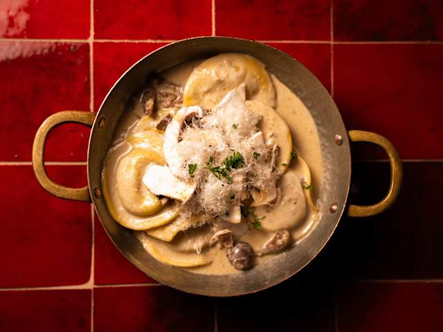 - Ravioli farcis aux cèpes et crème de champignons forestiers