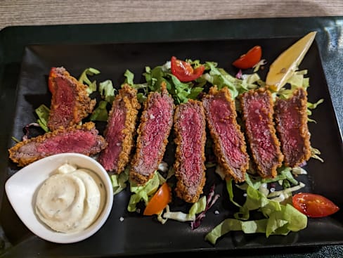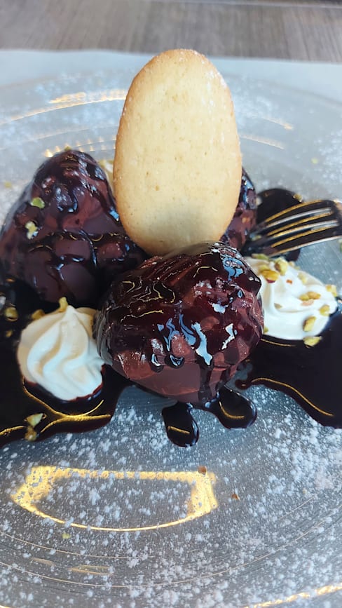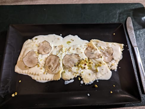 8/10It was tasty but a little overpriced, first they didn't apply the discount but then they did and apologized for it, it was still a few euros more but I didn't want to disturb the staff because they were really nice. We got truffle ravioli ( amazing), baby beef(a little underdone because we asked for medium) and fried mushrooms which were a really small portion for 8€. Dessert profiterole and yogurt mousse were not the best, the mousse was not really sweet and too sour.