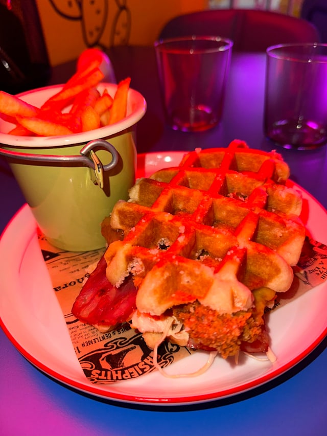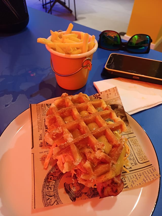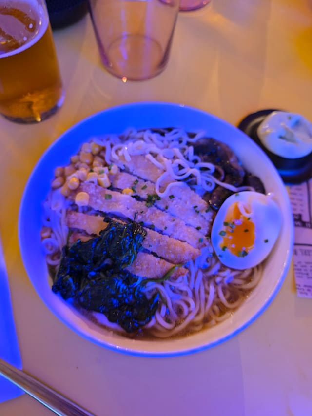 3.5/10The restaurant was completely empty when we walked in, but we trusted the great online reviews. The interior setting was nice, but the air conditioning was way too strong, making the wait quite uncomfortable. All the food arrived after an hour: we had ordered 3 ramen, 2 burgers and a cutlet. Unfortunately, they could only prepare one regular burger because they didn’t have enough ingredients; for the second one, they suggested a waffle burger, which didn’t convince us. The cutlet was good, the ramen was decent, while the chicken legs were quite unusual, with the breading not sticking and slipping off. On top of that, the prices are quite high compared to the quality and the portions, which are not generous.