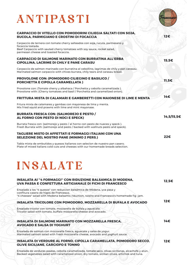 10/10I introduced some friends to the Francesco restaurant today and they were really impressed. 3 of us had the Milanese Francesco Style with cherry tomatoes sauted with brandy, rocket and parmesan cheese and it was sublime. The others had pizza which they loved as it was thin and crispy. The service as usual managed by Mateo was perfect and with a smile. The wines are top. Highly recommended.