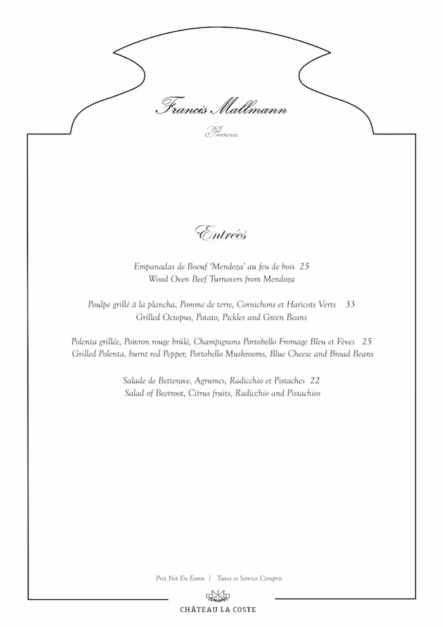 +2My husband and I grabbbed a wonderful dinner at the restaurant after our wine tasting and tour at Chateau La Coste. The grilled calamari for an appetizer was delicious. I never order chicken at most restaurants but I knew the Bresse Chicken would be excellent. The tomato salad was very fresh, ripe, and sweet. The patagonia potatoes served under the chicken was beautiful but difficult to cut and eat therefore the server offered another option and they were amazing. My husband ate every bite of his line caught Croaker fish cooked on the plancha with roasted tomato sauce, Andina potato, and roast vegetables.