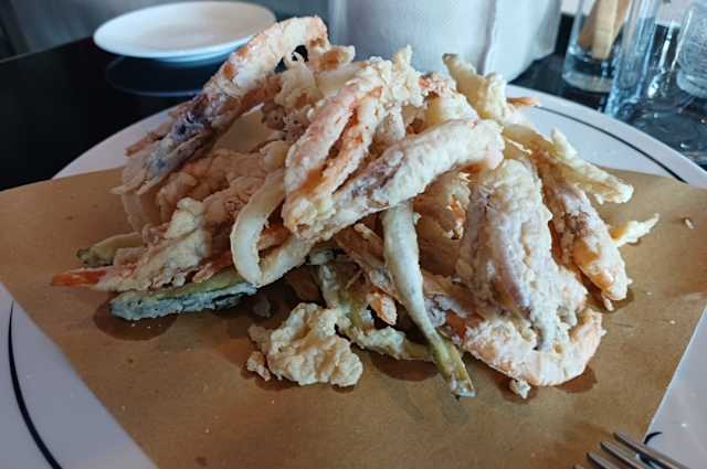 - (Spigola, dentice, orata, rombo, scorfano, calamari)