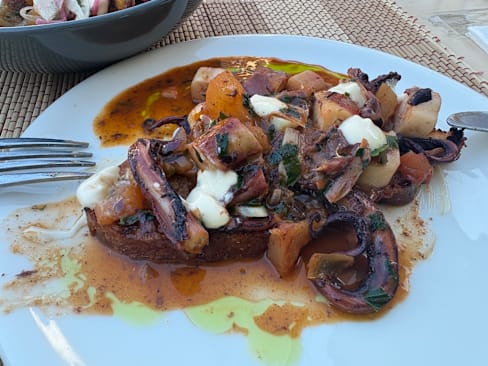 3.5/10The seabass was fresh…..from the freezer! Very small portion. The chicken plate was so sad, with some « brick » of potatoes fried outside and tasting nothing inside but the worst was that the chicken was so bad…very dry and with a fried skin. Horrible. When we share this to the waitress, she simply said that she will tell the cook. I will never recommend this restaurant.