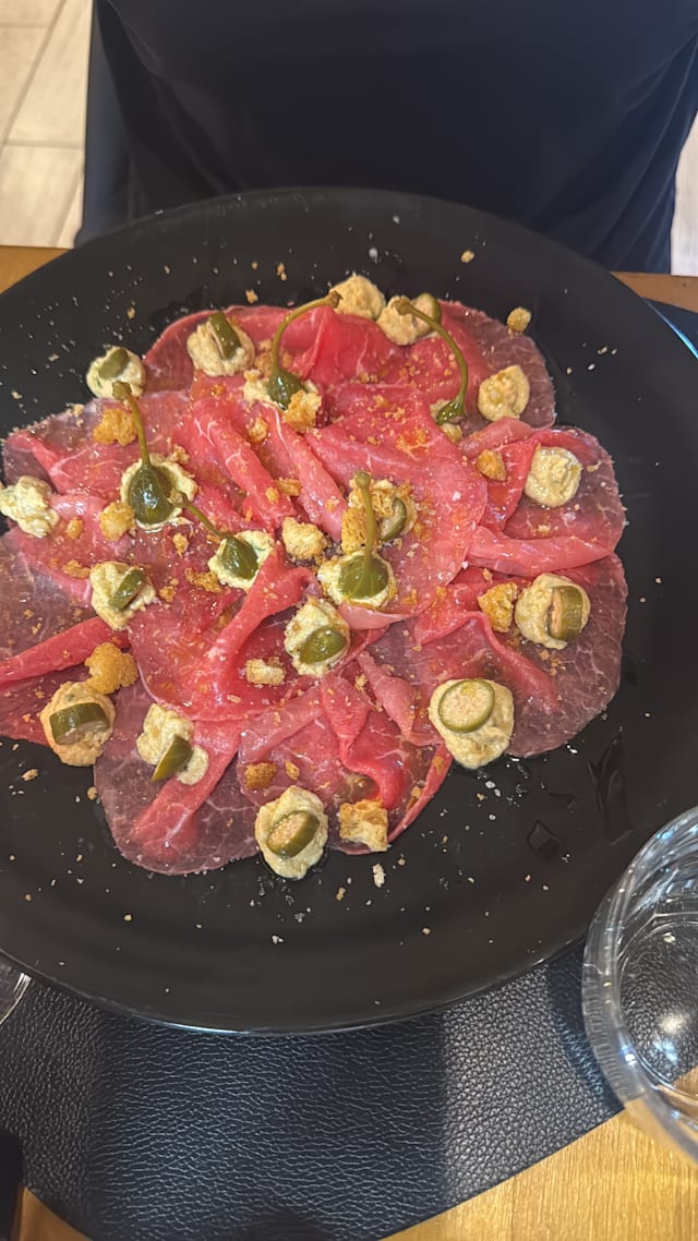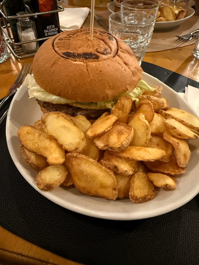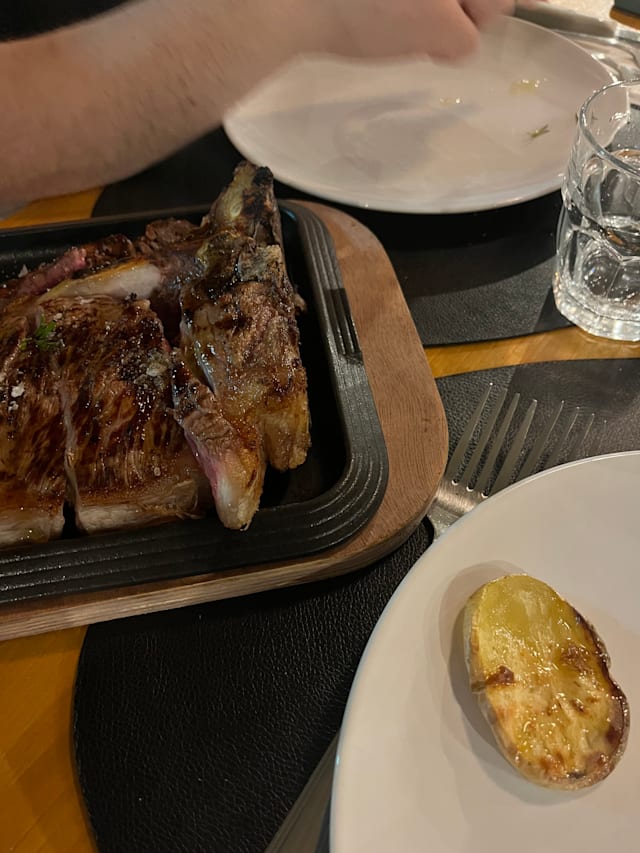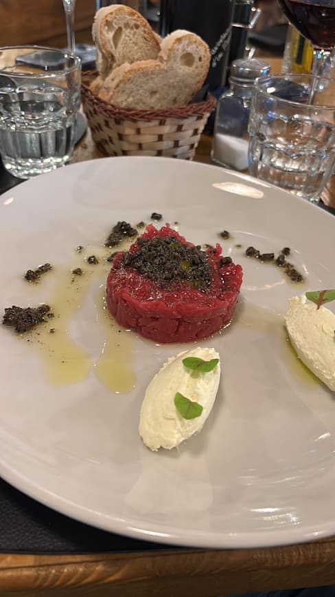 9.5/10Unpretentious, nicely decorated room with outside tables too. Pleasant atmosphere. Waiting staff were welcoming and kind. We shared an appetiser, which was delicious and plentiful, and enjoyed grilled lamb and ribs for our main courses with grilled vegetables and patatini. The Montefalco rosso was most palateable, and the meal was good value at 55 Euros for 2 including water and coffees. We will be back.