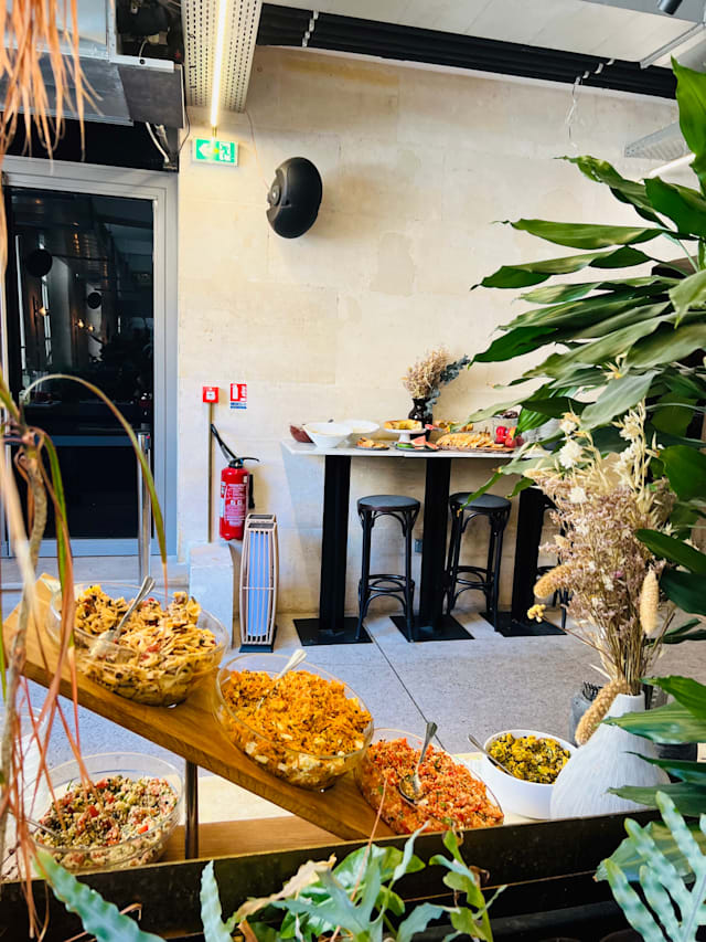 8.5/10Had a delightful brunch at this cute spot! The menu offers a tasty vegetarian feast—you'll find eggs and fish. It offers 3 types of scrumptious salad and hot dishes, very filling and satisfying. A few dishes weren't perfectly cooked, but the choices made up for it. The dessert spread has plenty of choices and will satisfy any sweet tooth. The staff was incredibly friendly and attentive. Though the interior is beautiful, it lacks a bit of coziness and design in places. The overall experience was lovely. Special shoutout to the attentive service and the sweet birthday drink surprise for my mom! Just a heads up: food is not refilled at the last sitting. We will certainly consider this brunch again when in Paris and have already recommended it to friends ????
