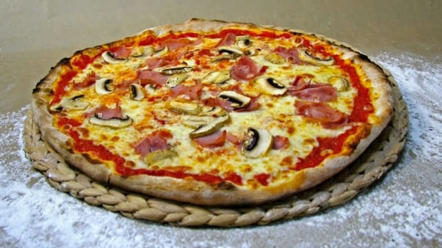 Tomate, mozzarella, pecorino sardo, jam6n york y champinhones