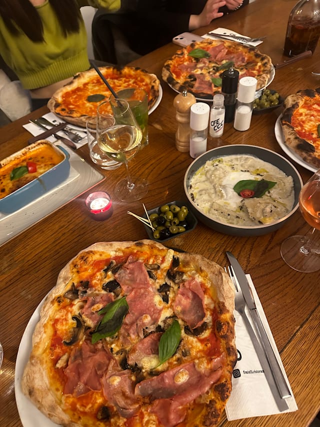 7/10Starter, fried calamari, was really disappointing. Overcooked until almost uneatable state. Pasta fresca was really good. Limited choice of wine by glasses but their rose was good. Good coffee. Correct service. Correct price. All in all, go there if in the area.