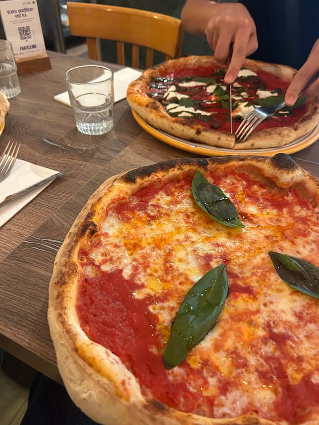 Hello! Thank you for sharing your thoughts with us. We're delighted you enjoyed our dough and the service from our friendly team. We truly appreciate your feedback about the toppings and dessert sweetness. Our aim is to provide an authentic Italian experience here in Paris. We hope to see you again for an even better visit! Warm regards, The Fratellino Team