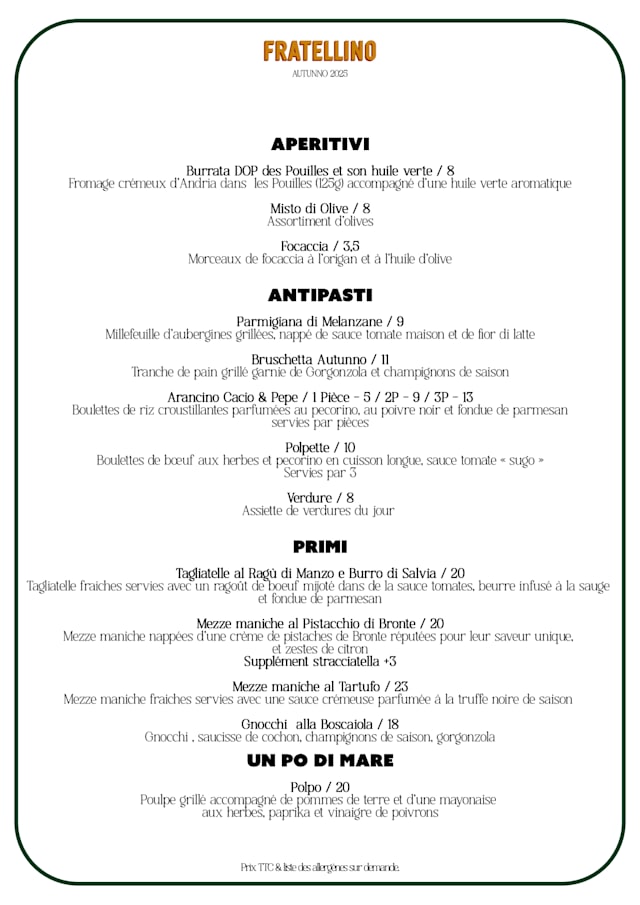 Dear Lina, Thank you for your wonderful feedback! We’re so glad to hear you enjoyed your time with us at Fratellino. It warms our hearts to know you had a lovely experience. We can't wait to welcome you back soon for more authentic Italian flavors! Best regards, The team of Fratellino
