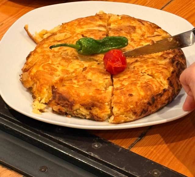 - Panceta, cebolla crujiente, queso manchego, salsa BBQ