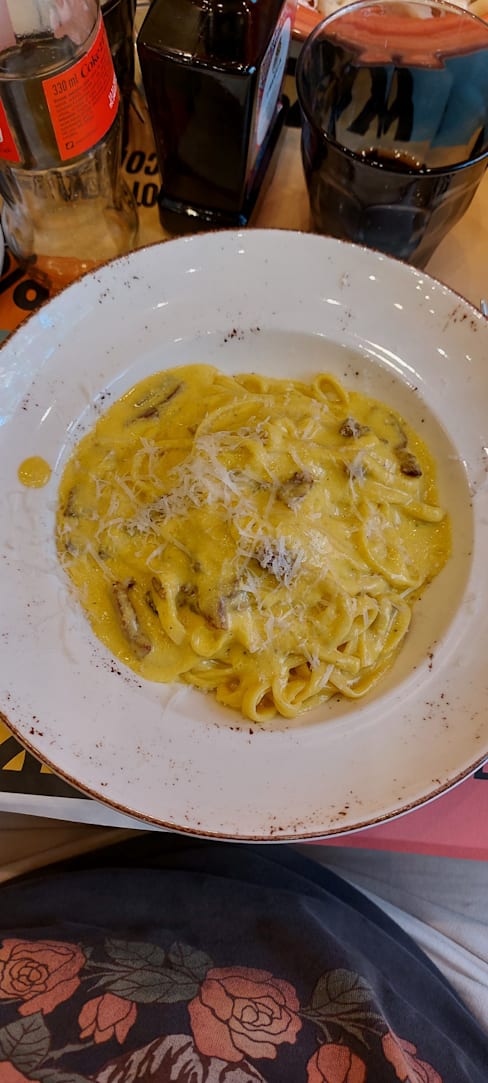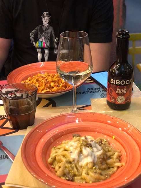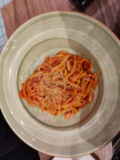 10/10+4I really felt like I was having a real Italian experience at the cute restaurant serving freshly made pasta in a little neighborhood in Milan away from all the touristy places. The staff is young and energetic. The food was amazing. My husband wanted one more bowl of tagliatelle bolognese before we left Italy and he was not disappointed. I ordered the strozzapreti with pistachio pesto and a lemon spritz. There are so many great options on the menu. Either select one of their combinations or create your own combination. We were there aroung 7:00 p.m. on a Thursday night and it was not busy. It is modern and the decor was bright and fun. There is a €2 per person cover charge.