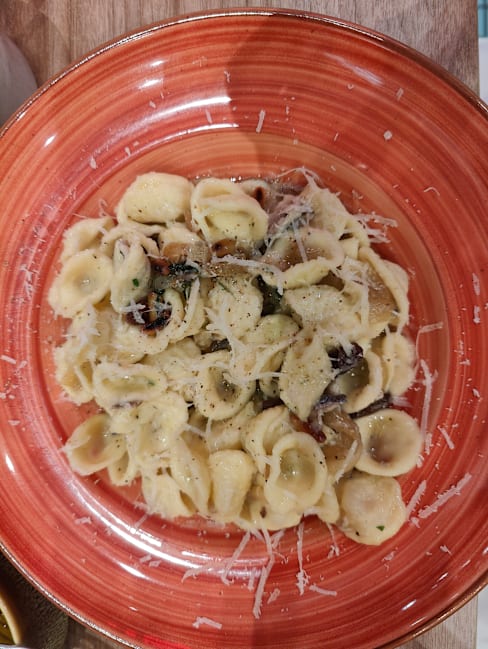7.5/10The orecchiette alla sarda could have had a better taste, there was little amount of sardines and the dish was a bit bland. On a side note would have appreciated if the grated cheese was on the table so we can add some more instead of having the grated cheese already added on the dish before serving it on the table. Service was impeccable though and the atmosphere is good and staff is welcoming!