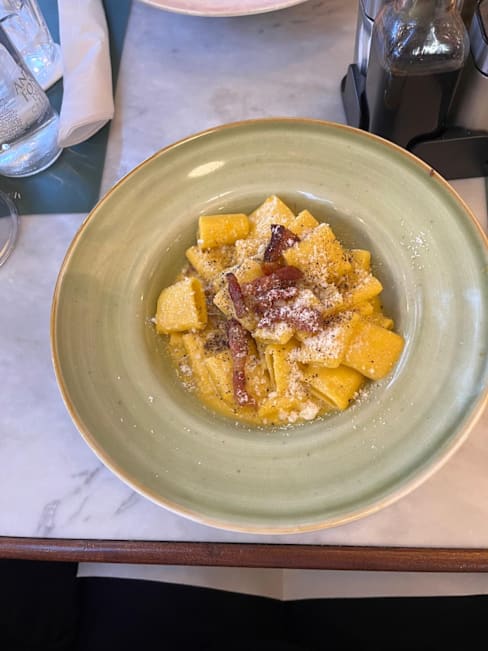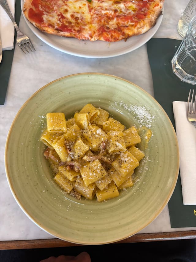 9/10For restaurants near the Vatican, this was the best combo of food quality, price and available seating we found. We had lasagna, spaghetti w/ olive oil, garlic and pecorino and a side of cherry tomatoes in an olive oil, balsamic dressing. All three dishes were great. We sat outside and there were misting fans to help with the heat. Would recommend if you’re in the area and need an option for good Italian dishes that won’t break the bank.
