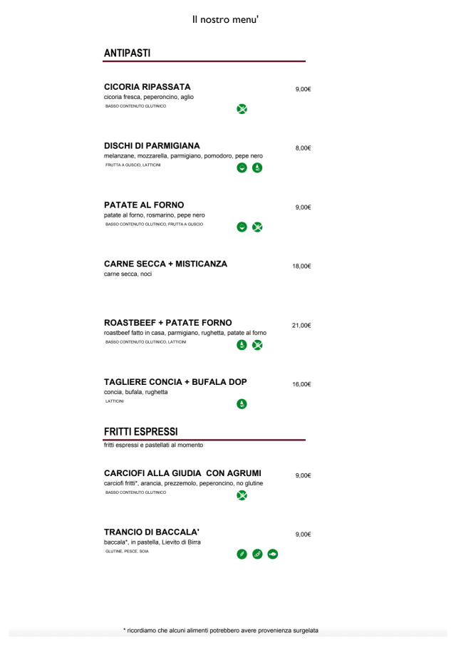 PASTA MENU PRANZO (SENZA SCONTO)€9.5 per guest