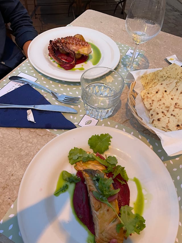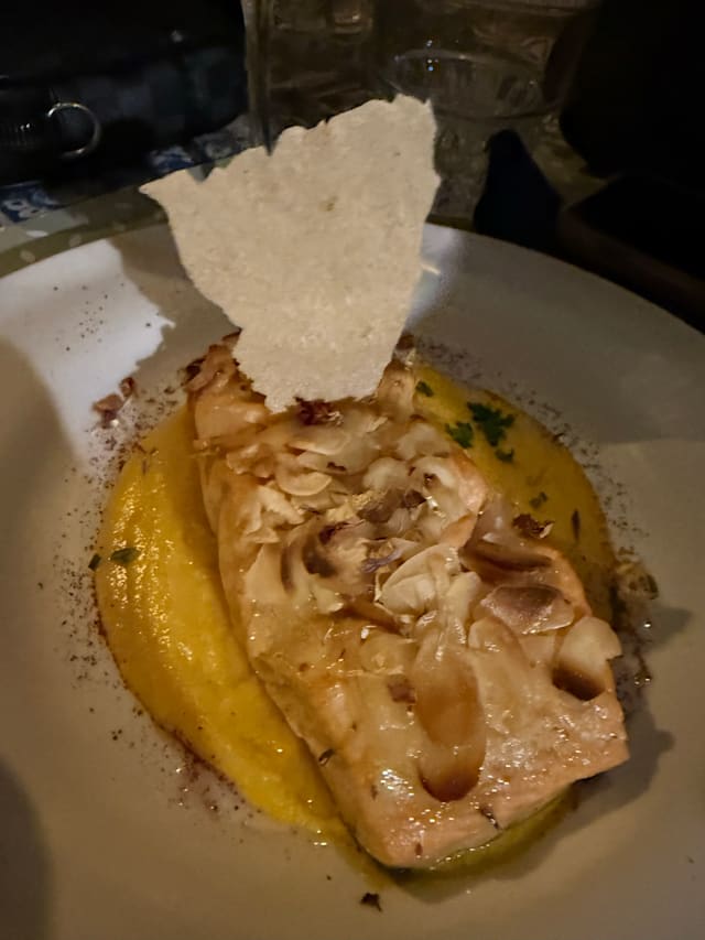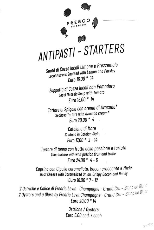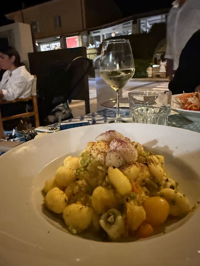 10/10⭐⭐⭐⭐⭐ Fresco in San Pantaleo is an absolute gem! The ambiance is delightful, creating the perfect setting for an unforgettable dining experience. The food is simply delicious. The tortino di melanzane was elegant and creamy – I couldn't resist wanting another portion! The sea bass with potatoes, complemented by a sauce made from fresh datterini tomatoes and taggiasche olives, was fantastic. The hospitality was top-notch, and the offered Mirto was a delightful discovery. The wine list is impressive, with the vintage Tunina from Jermann being particularly riveting. You just must go to Fresco – it's a dining experience not to be missed!