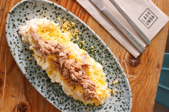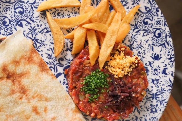 - Tartar de atún con yema de huevo, soja y aceite de oliva