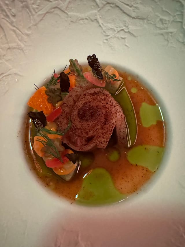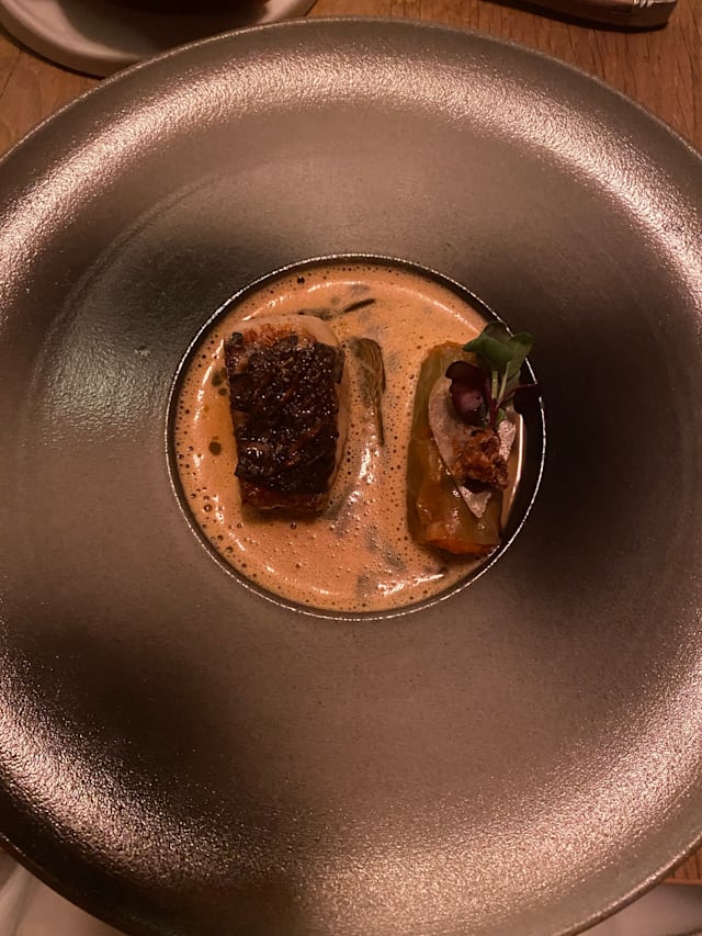 Meticulously prepared sea bass terrine, perfectly fried veal sweetbreads, koji butter (fermented on site) and a penchant for exotic flavours such as ...