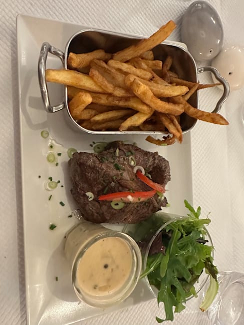 10/10We had a lovely evening at Le Frog. Staff were very friendly and attentive. We tried frogs legs and escargot for the first time. We then had steak, fish and the slow cooked beef. All were really delicious. I would definitely recommend