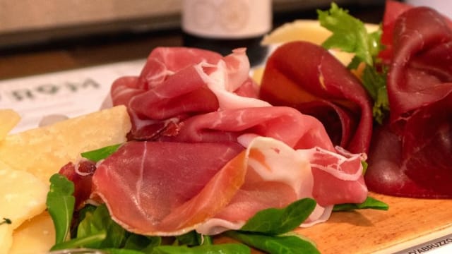 - Crema di formaggio al tartufo, pancetta coppata, rucola e noci