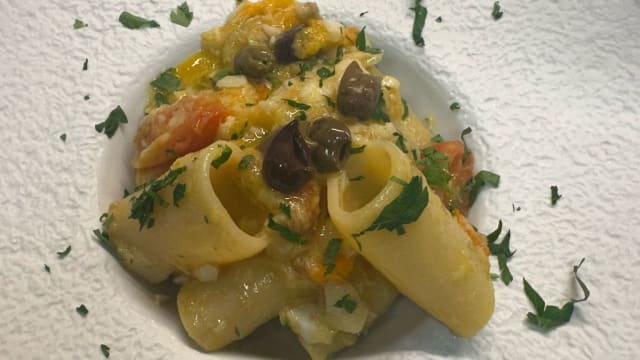 [Genuine octopus, taggiasca olives, capers, tomato, extra virgin olive oil, garlic and parsley]