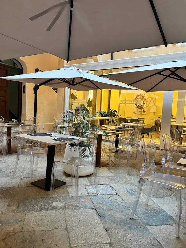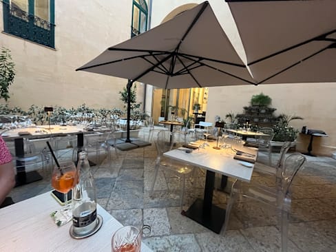 8.5/10Good food, especially the fish on spinach was good.. The cozze nothing special, the semifredo was prefabricated. Nice modern location inside, but outside on the street more for bar service. The court is reserved for hotel guests